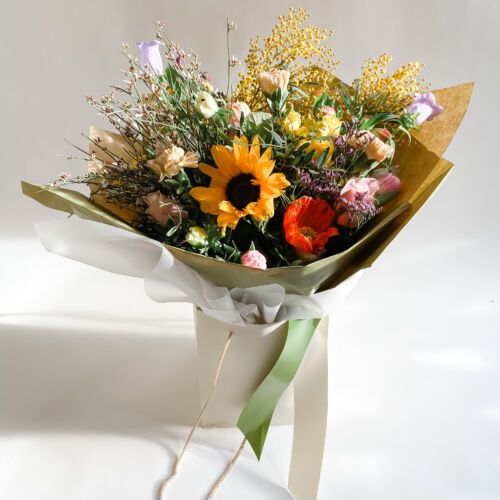 The Seasonal Bouquet is a lovely surprise of seasonal blooms selected by the florist creating your order. See some examples of our seasonal bouquets in the imagery used. All of Isabloom Floral Design’s bouquets will be beautifully presented and hand delivered. The seasonal bouquet will be wrapped in kraft paper and securely stored in a aqua pack to ensure the flowers are kept as fresh as possible. The final touch is a gorgeous sage green paper bag and handmade message card. All of the packaging used is 100% recyclable to comply with our ethos.